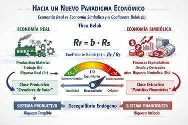 Este coeficiente permite visualizar y medir el desacople estructural entre economía real y economía simbólica. Cuando "b" disminuye persistentemente, indica una sobreexpansión simbólica: un volumen creciente de derechos financieros, reclamos presentes y futuros, y promesas de valor que la economía real no puede respaldar.